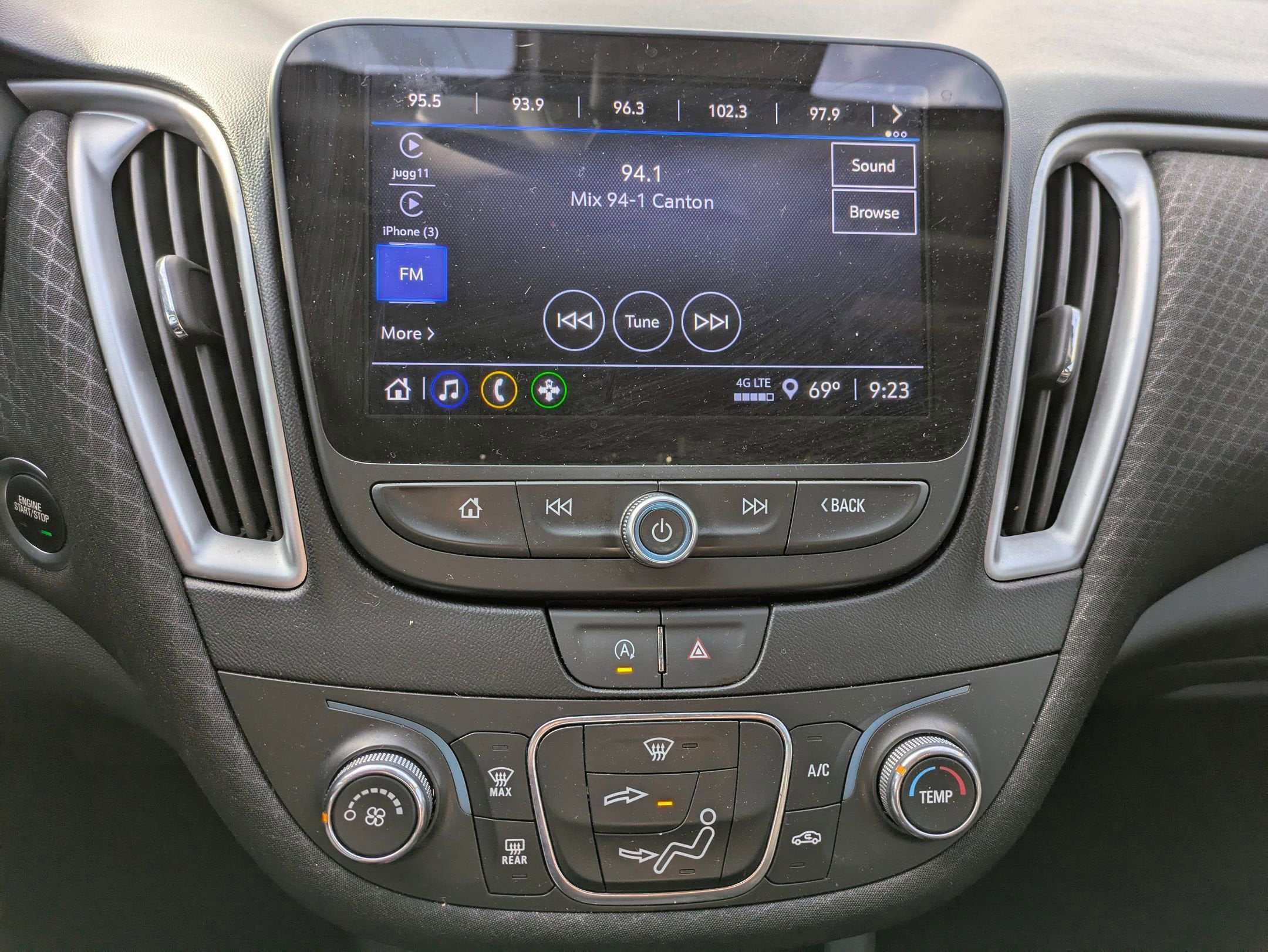 - Audio system, Chevrolet Infotainment 3 system, 8" diagonal color touchscreen, AM/FM stereo. Additional features for compatible phones include: Bluetooth® audio streaming for 2 active devices, voice command pass-through to phone, Apple CarPlay and Android Auto capable.